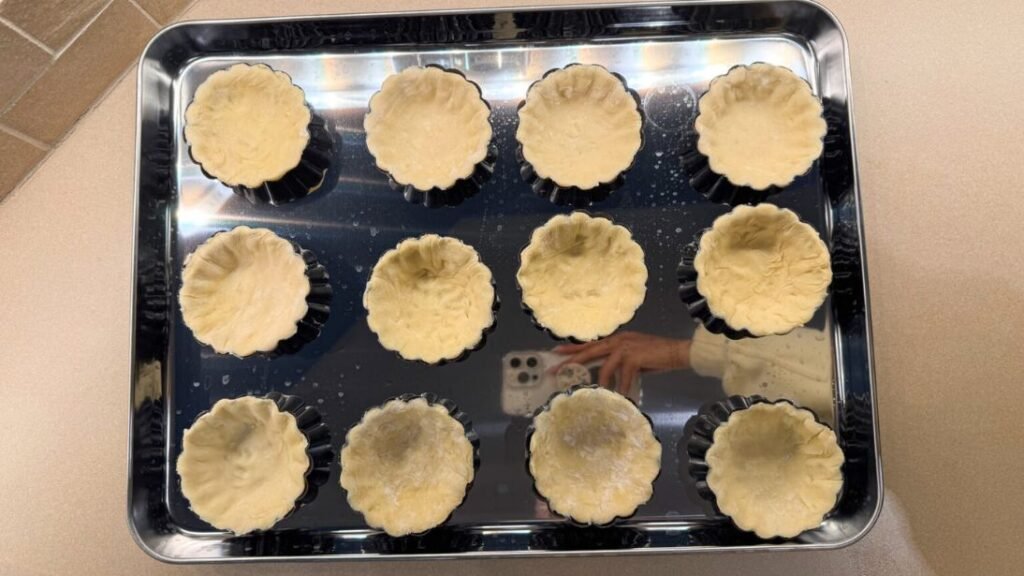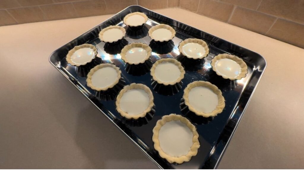 Each tart usually bakes for 15-20 minutes or until the custard is set. Use a teaspoon to add the filling evenly, and time your baking carefully to get the perfect mini tarts every time. These small egg tarts are fun, easy, and bring a fresh twist to the classic recipe.