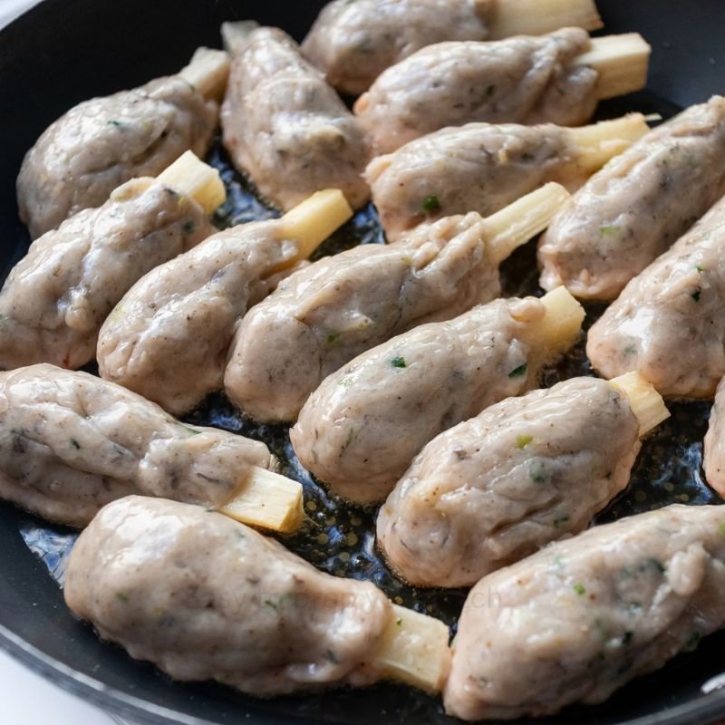 - Form the shrimp: Carefully wrap the mixture around each sugar cane stick using oil hands to stop sticking. Forming the pieces into whole sticks keeps them uniform and easy to handle. I have found that taking a little time here makes cooking much easier later.